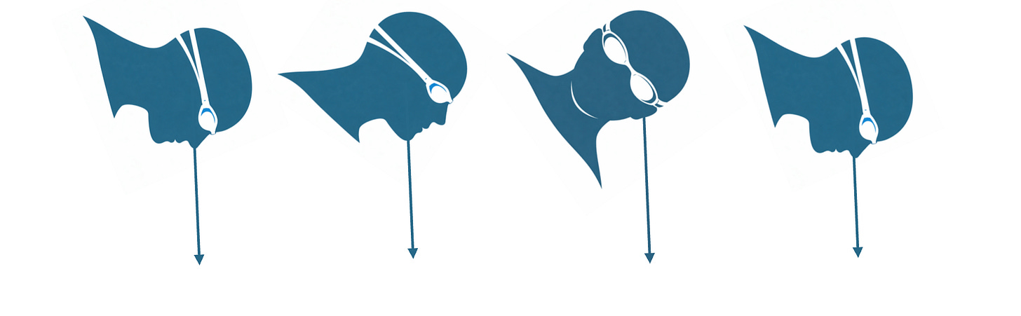 When a swimmer displays odd or incongruent head movement on one stroke but not the other, most often tied to the breath cycle, it impacts symmetry by lengthening one stroke and shortening another.