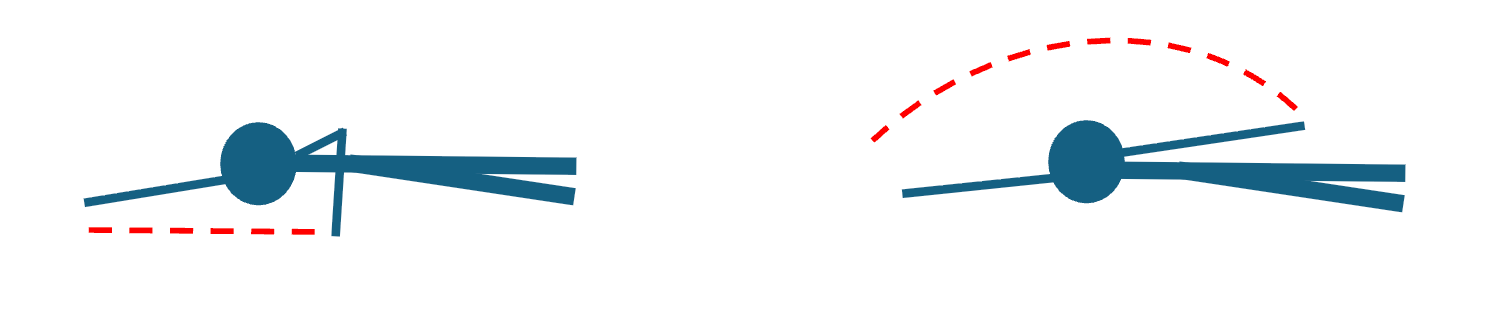 This one is fun. Imagine that the bellybutton is a laser pointer. Now watch where the red dot goes. The belly button will point to the wall near the end of the dominant pull, but it will hardly ever occupy the quadrant on the other side of the body. The illustration below represent a frontal view of a swimmer and the ranges in which the belly-button laser pointer occupy on the dominant versus non-dominant side.